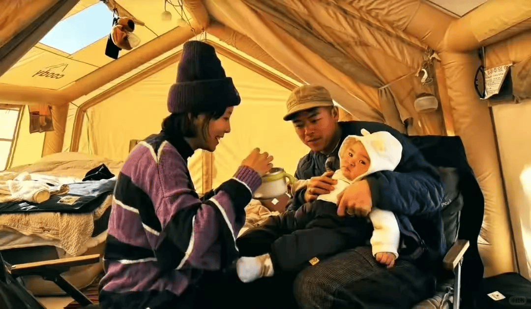 她也敢把9个月的娃带到零下10度的户外露营,带到2800米的雪山上面看雪,带到音乐节一起工作,娃完全没有阻止自己向外、向上的探索步伐。