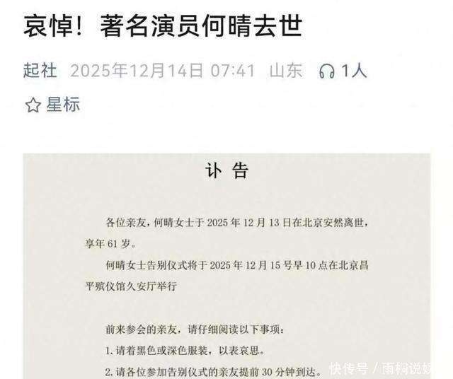 12月13日晚,北京突然传来了令人震惊的消息:何晴去世了。第二天,消息在网络上迅速传播开来,大家才意识到,这位曾被誉为四大名著里最美的女人的演员,已经悄然与病魔抗争了整整十年。明明在2023年,她还与傅艺伟一起吃火锅,脸色红润,看起来仿佛刚拍完戏,怎么就突然离开了呢?十年前,她第一次接受了开颅手术,医生切除了她的一块颅骨。她醒来后,第一句话模糊不清,勉强说出一句:别让我儿子看见。术后,她通过反复的康复训练,一边练习发音,一边大声朗读报纸,甚至把报纸念到破烂,只为了能够顺利地说出台词。她以为自己挺过了这一劫,然而到了2024年春天,肿瘤却像猛虎回头一样,迅速扩散到肝脏和肺部。她最后一次进医院时,手里拿着的是自己的退休申请表,填到一半时,因手抖写不下去。