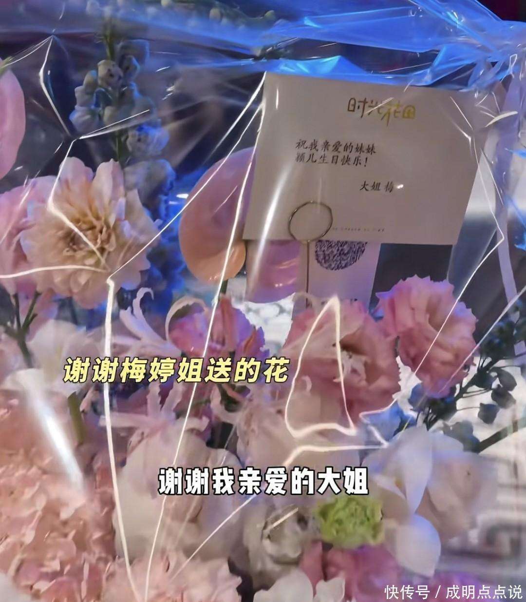 在颖儿37岁生日这天,她感受到了满满的温暖。刚进入包厢,她就被眼前的一切惊艳到了——墙上的气球、桌上的灯台,还有专属的生日帽,都是付辛博精心准备的,满满的仪式感,令她感动不已。更让她暖心的是,虽然梅婷因为在外地拍戏不能赶来,但她特意托人送来了鲜花,卡片上只写了简短的三个字:大姐 梅。这份温情令她心头一热,两人因为电视剧《六姊妹》而结缘,现在已经像亲姐妹一样亲密无间。