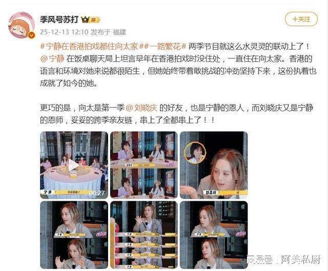 12月13日,网络上出现了关于宁静在综艺节目《一路繁花》中的一段发言,迅速引发了大家对神仙友情这一话题的热烈讨论。宁静在节目中大方地分享了自己早年去香港拍戏的经历,她当时身处一个完全陌生的环境,甚至在很长一段时间里都住在了向太陈岚的家里。她的这一番讲述,仿佛让我们看到了当年她在香港打拼的艰辛岁月,同时也让大家看到了向太这个在香港娱乐圈有着巨大影响力的人物背后那份鲜为人知的义气和情怀。