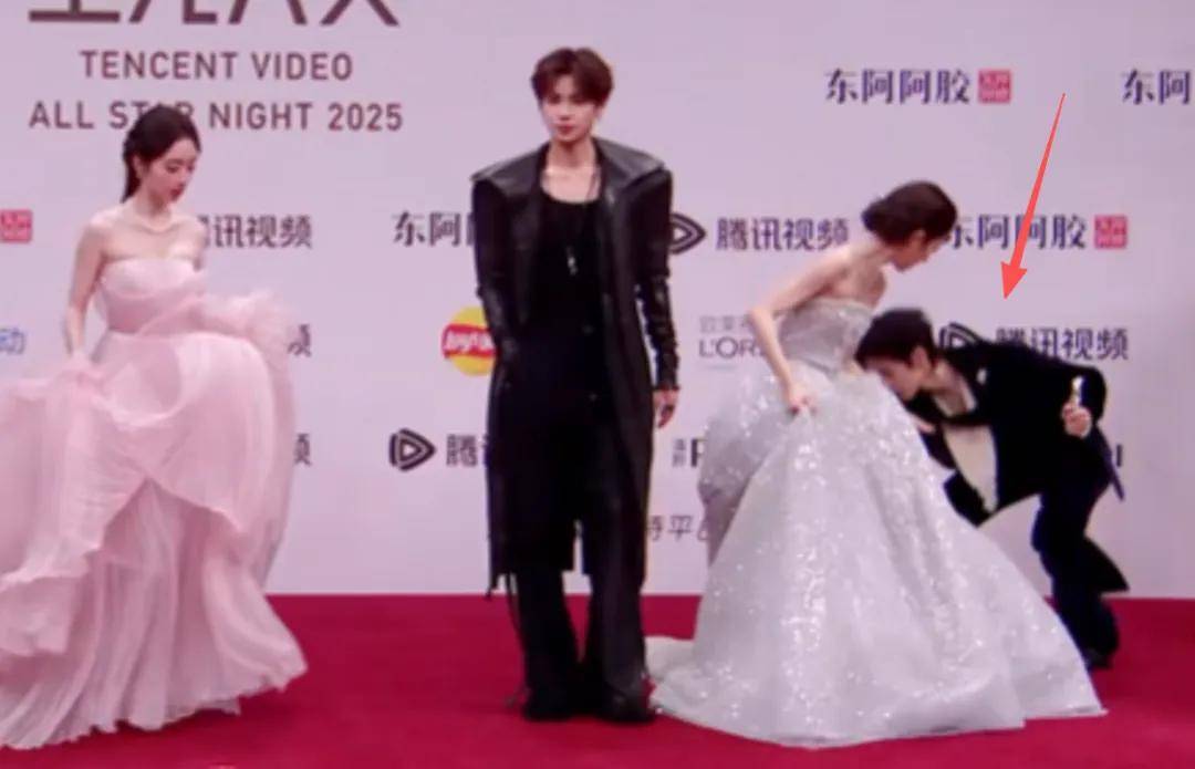 现场不少艺人也非常热心,赖伟明和安沺还帮孔雪儿整理裙摆。王弘毅也帮万鹏细心整理,很绅士。