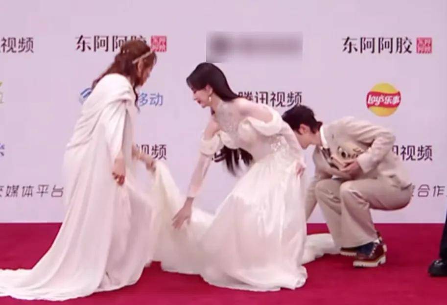为了这次红毯,不少女星都在服装上下了大功夫,但用力过猛,就会影响走红毯。《许我耀眼》中方蕾的饰演者钟雅婷一身。蛋糕裙亮相红毯,但由于裙摆太长,只能边踢边走,走路不仅慢还得旁边女星搀扶,也是很难了。