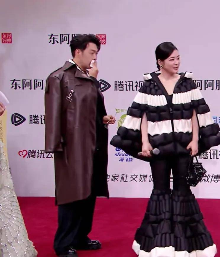 在前年红毯流鼻血、去年红毯抢话筒之后,上淇这次红毯又挡住了别人的镜头。超大裙摆后面还用气球做装饰,结果就是在走路的时候,挡住别人的镜头,非常抢镜。