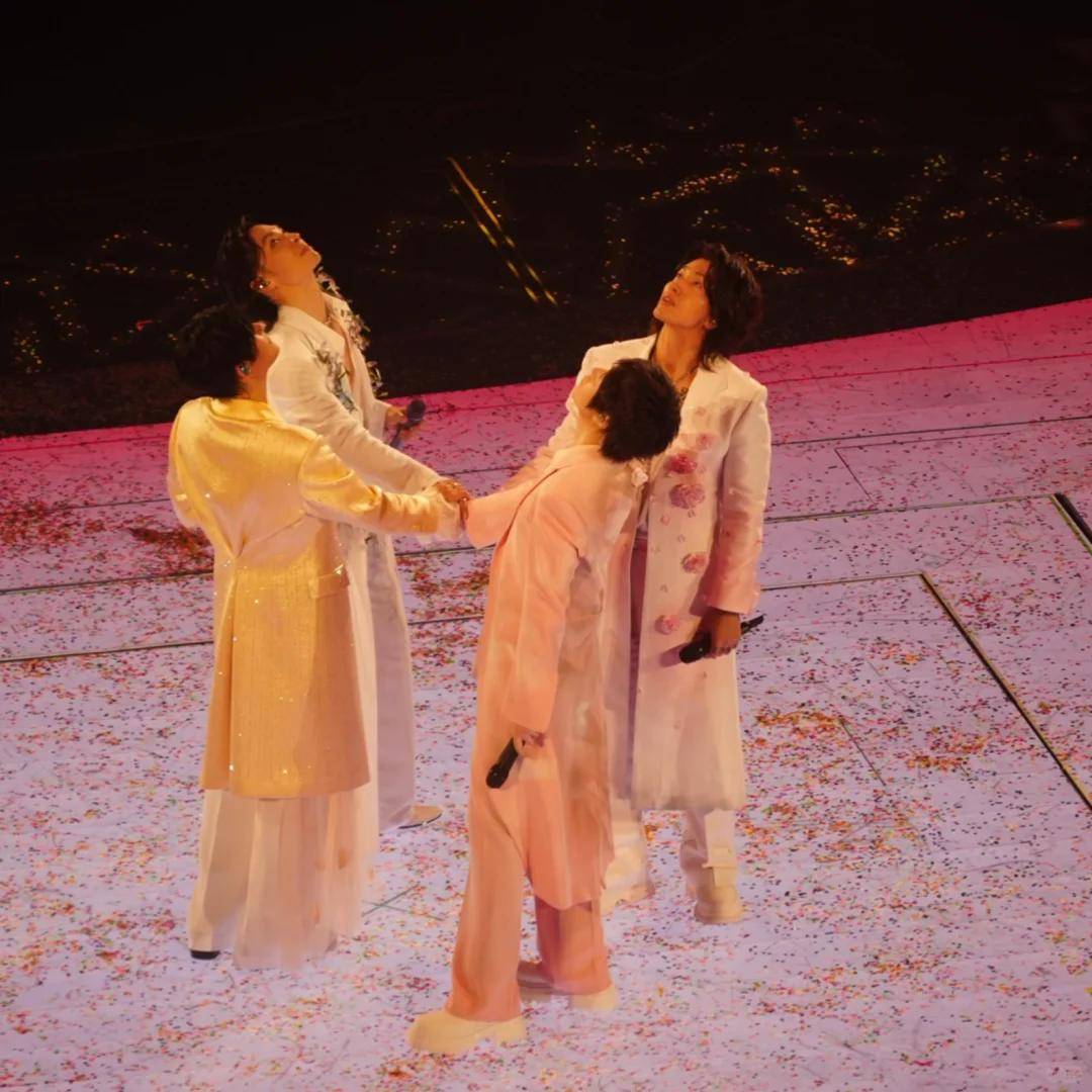 台上,言承旭戴着流星项链缅怀大S,周渝民讲到动情处哽咽,吴建豪跳到汗如雨下。