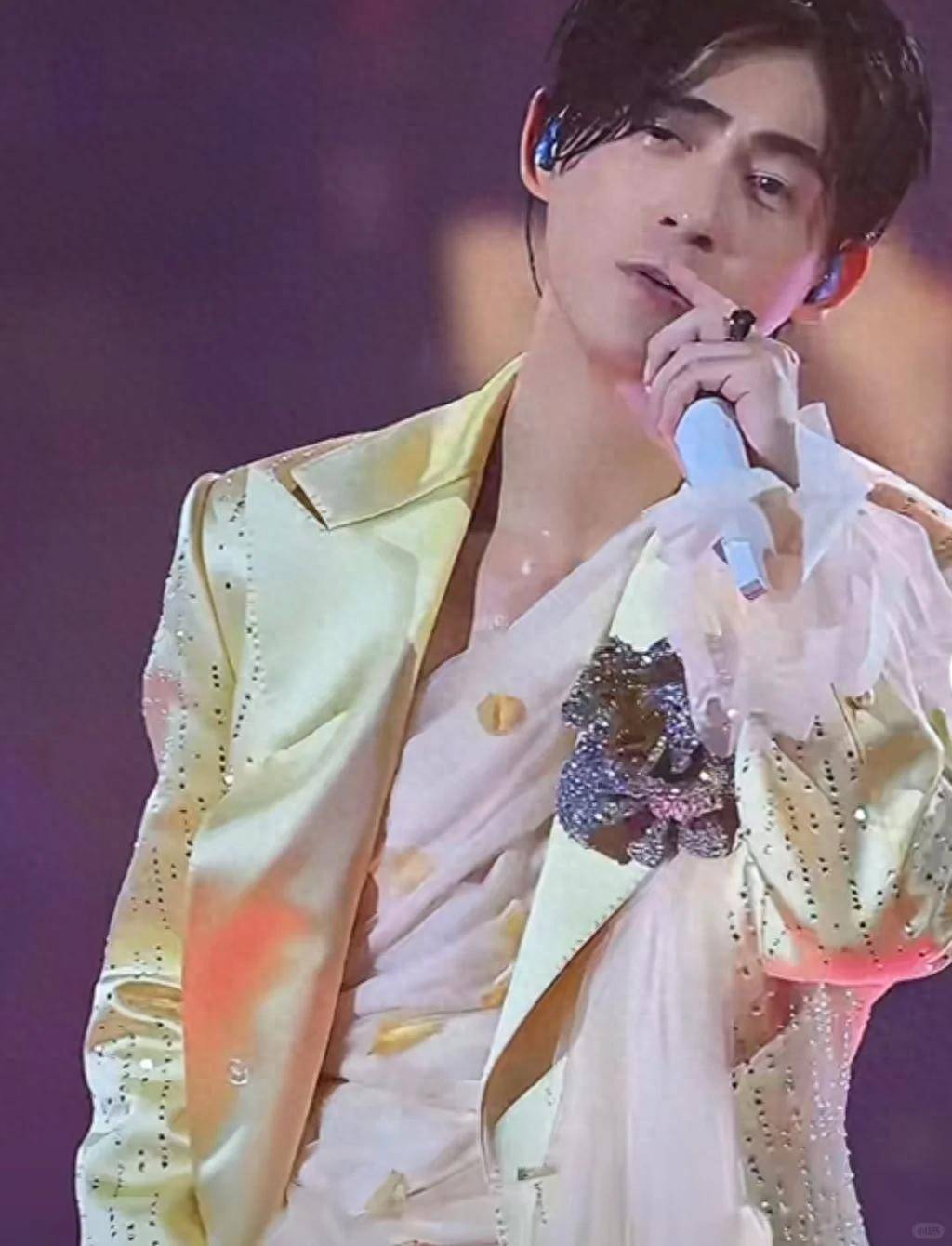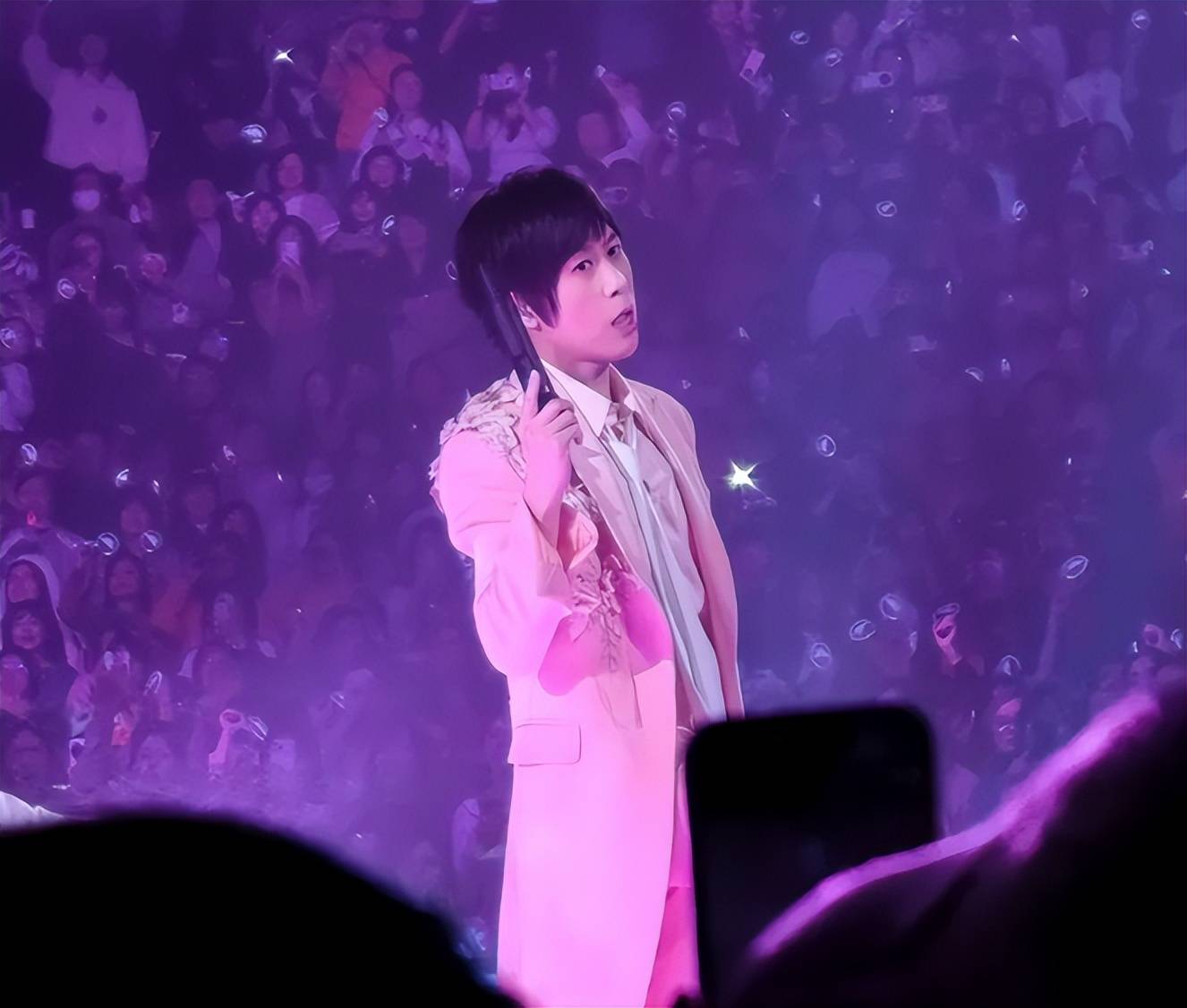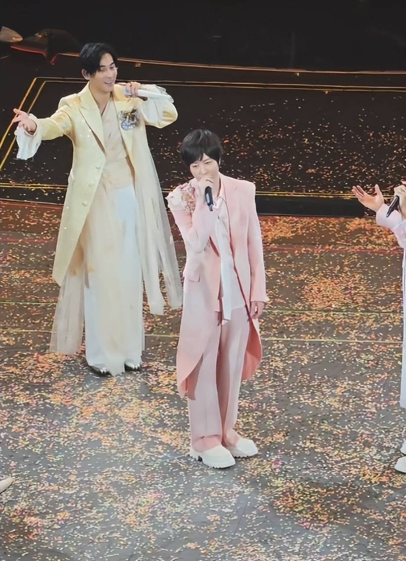 他和言承旭合唱《流星雨》,全场万人合唱,荧光棒挥舞得像星海一样。