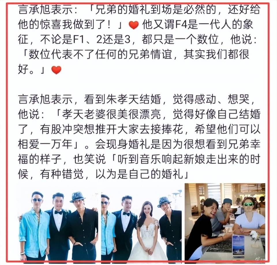 当年他结婚时,吴建豪和言承旭推工作来参加,感动落泪。