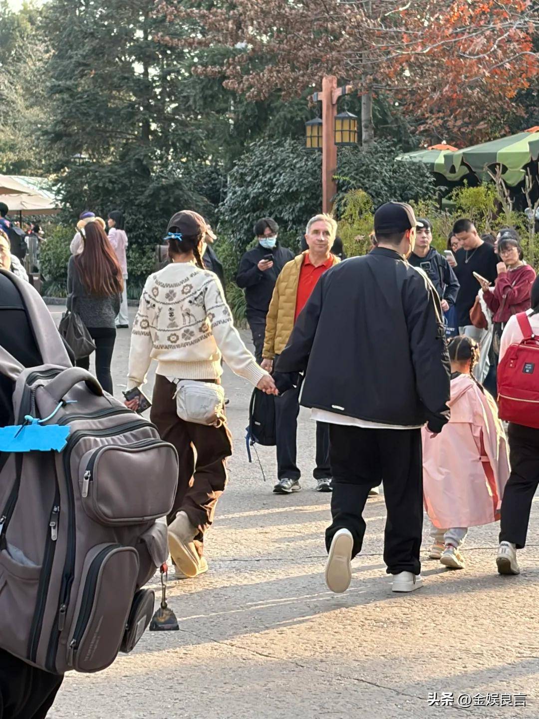 孩子们则交给了贴心的保姆照顾,坐在婴儿车中被轻轻推着,夫妻俩得以专注于彼此的陪伴,没有被育儿的繁忙牵绊。这种安排显然让整个家庭出游既有温馨的亲子时间,也保留了夫妻间的独处空间,体现出他们对生活节奏的把握和家庭关系的经营之道。