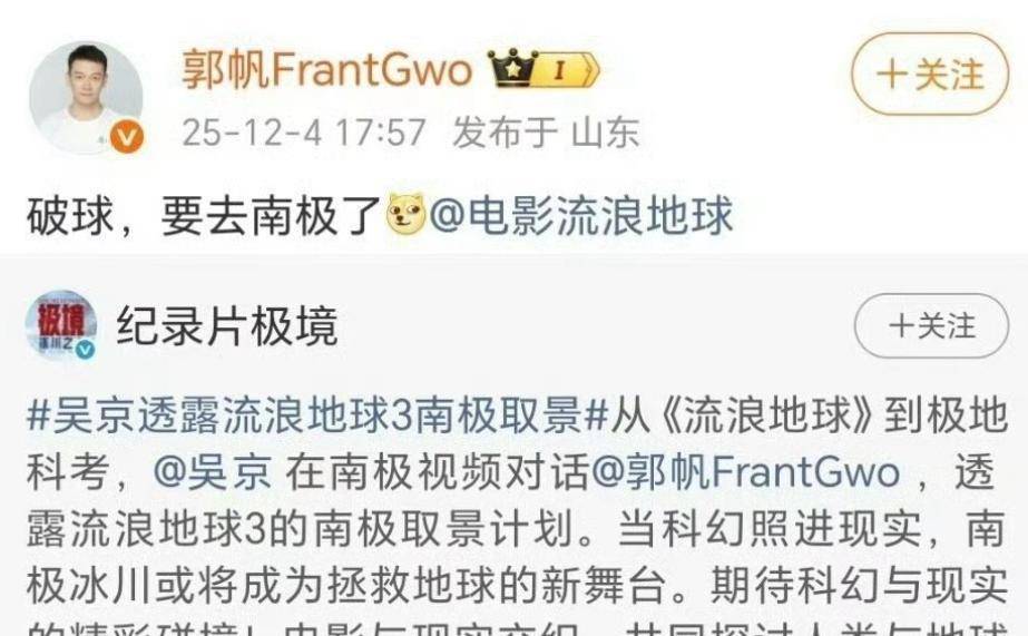 讲好一个宏大的故事,本就是比炫技更艰难的航行。但《流浪地球》的团队,向来是内容与视效的双重攀登者。如今,郭帆导演官宣的“南极计划”,便是这攀登路上最震撼的一步。灵感源自吴京参与南极科考时的隔空畅想——那片亘古的冰川、无垠的冰海、极致的严寒,不正是末日图景最写实、最壮丽的注解吗?