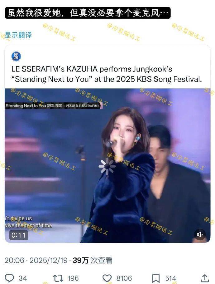 2025年KBS歌谣大祝祭的舞台,向来是K-Pop顶级艺人们展示年度高光时刻的竞技场。然而,今年LE SSERAFIM成员中村一叶(Kazuha)的一段个人表演,却在庆典之后掀起了远超预期的舆论波澜。