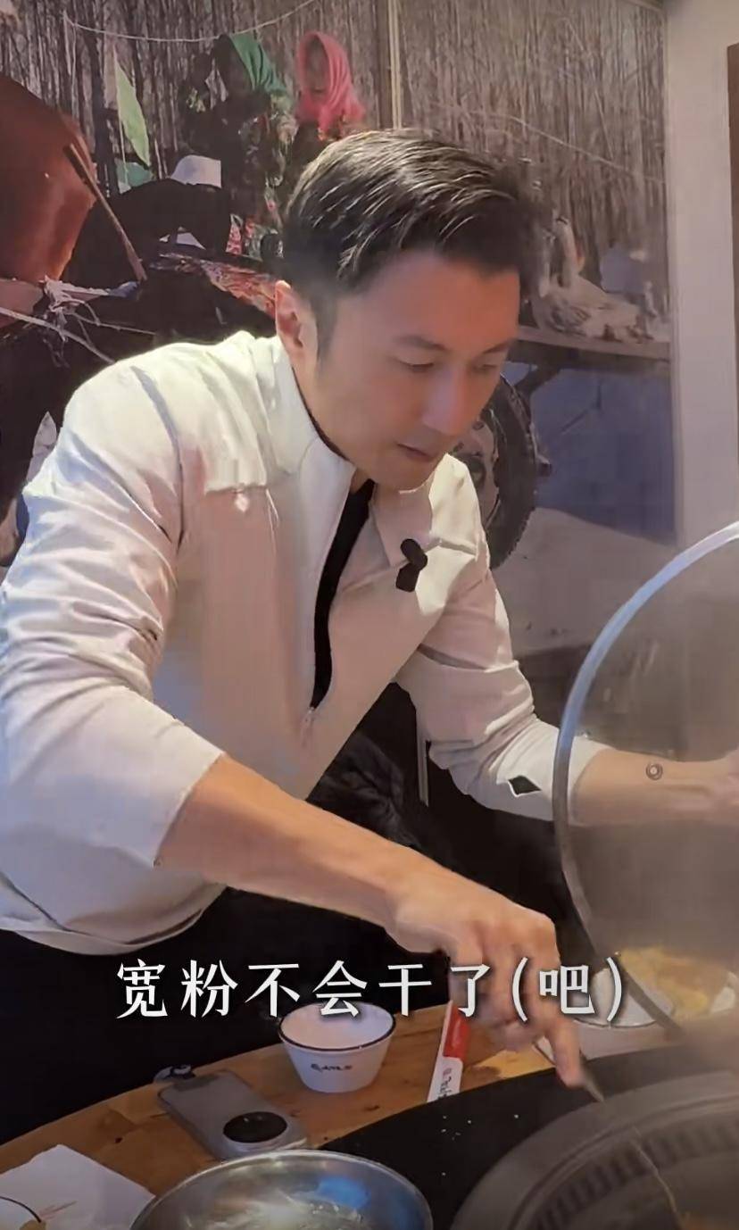 等待开锅的过程更是全程高能。服务员下入大鹅、配菜和调料盖好锅盖后,谢霆锋全程“操心”模式拉满,时不时就掀开锅盖查看情况,生怕锅里的宽粉粘锅底。后来干脆自己上手添加配菜,沉浸式体验铁锅炖的乐趣,一举一动都透着孩子气,网友纷纷留言:“这哪里是45岁的影帝,分明是谢三岁春游!”