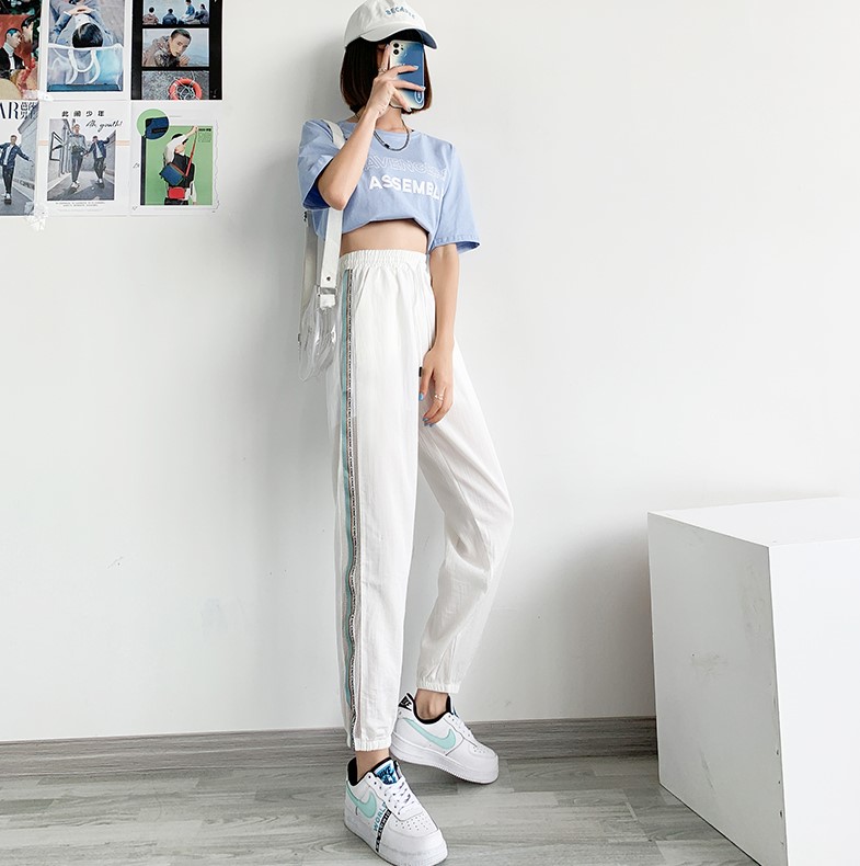 白色的裤子可以搭配黑色或者红色的高跟鞋,高跟鞋绝对是很百搭的一款鞋子,穿上去性感又有气质,或者穿一双帆布鞋也是不错的选择,街头气息十足,运动风格的穿搭很适合夏日。