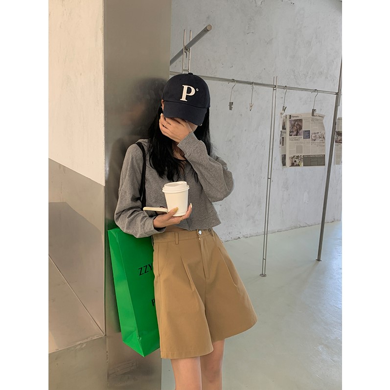 宽松阔腿卡其裤