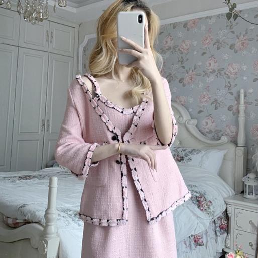 时尚粉色套装,新颖的口袋设计,运动feel十足。简约时尚,收腰显瘦,潮流街头范。俏皮的图片红色套裙,给春天增加一抹流动的阳光,休闲的款加上短款圆领上衣,穿出简约的造型,简约的错长款裙子让自己的风格永存。搭配平底鞋,在这个忙碌的休闲时间让自己的脚好好放松,白色的裙子收腰,点缀和整个套装的颜色。