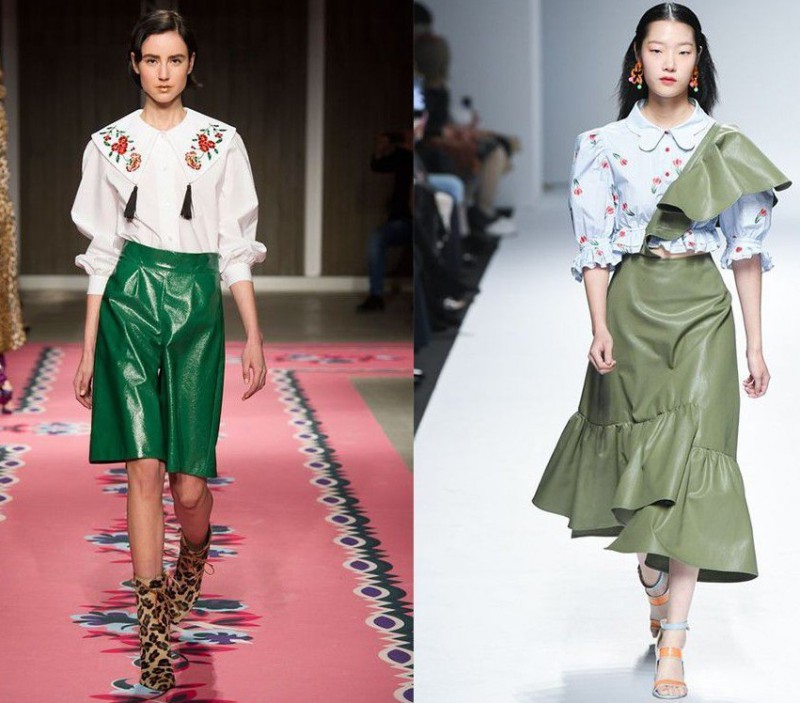 衬衫与皮裙的组合,可以说是非常轻松又简单的搭配。百搭的衬衫,带着一种简洁干练,搭配上一条时髦的质感皮裙,有着一种新鲜的美,同时还不失帅气的感觉,在顶级时装秀场,不乏这样的潮流演绎。