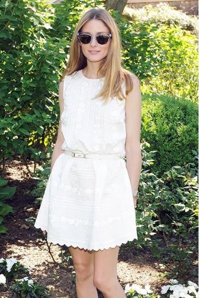 纯白色无袖连衣裙搭配黑色墨镜十分得体洋气,同时又都是经典色,墨镜很有夏天的感觉。