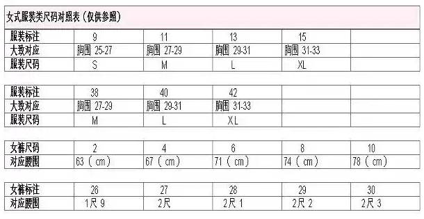 以上关于女款裤子尺码表的内容介绍,以及其他相关内容的分享,大家可以作为参考建议,具体根据自己的实际尺码选择,对于以上问题我们就介绍到这里,希望可以帮助大家更好地了解女款裤子尺码表。