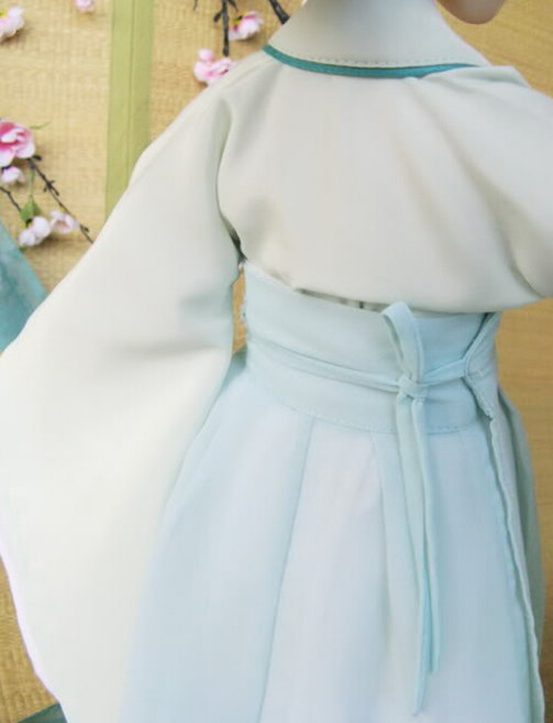 5、最后在两边汉服襦裙的裙带都系一个半蝴蝶结即可。