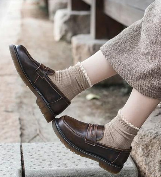 其次,圆头小皮鞋也是大家在穿JK制服的时候应该舍弃的单品。这种鞋很受lo娘的喜爱,经常被用来搭配洛丽塔小裙子,样式也是十分可爱的类型,但它跟JK制服的风格却大相径庭,强凑到一起会让人感觉有点怪异。因此,如果你是JK制服的爱好者,最好不要选择搭配这款单品。