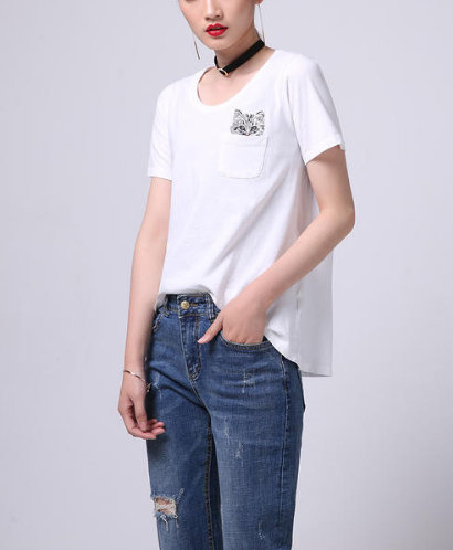 如果你是富有创造力并且会些针线活的妹子,那可以尝试着自己动手改改衣服哦。你可以选择把过长的部分剪掉,可以剪成不规则的样式,然后缝上一些铆钉之类的装饰品,使得你得T恤展现出一种叛逆不羁的时尚感。