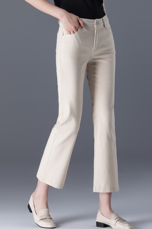 搭配米色喇叭裤