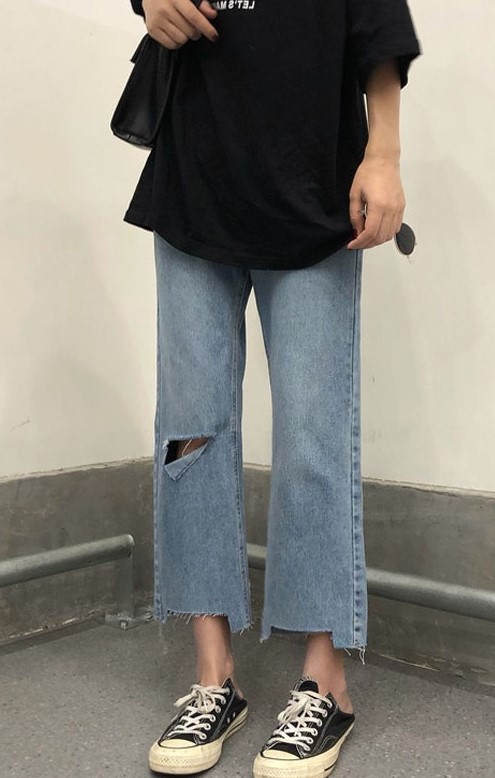 搭配牛仔破洞裤