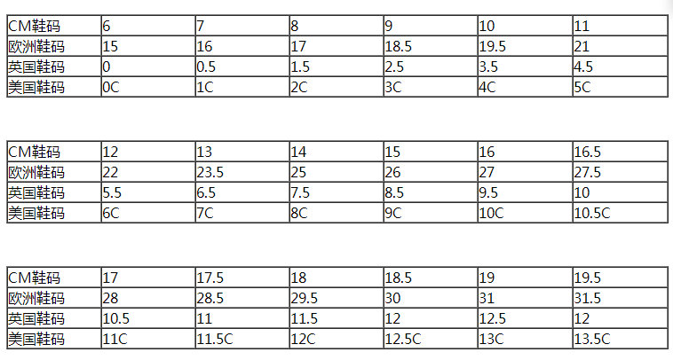 三、耐克儿童鞋尺码对照表