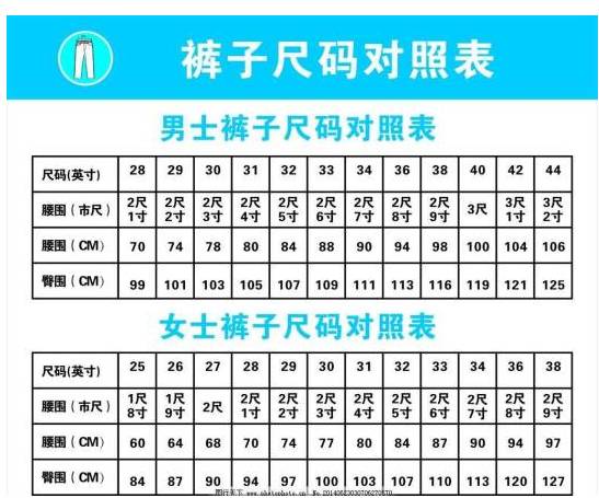 比如说34码的裤子,用34减去7就是腰围数值,34码所对应的腰围是二尺七,也就是90cm,而90厘米的腰围再去选择裤子的时候就要具体情况具体看待了。