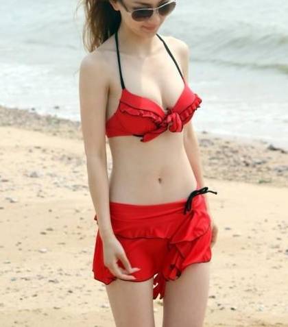 太瘦的话穿比基尼也会有点奇怪。太瘦的美眉可以选择抹胸式的比基尼,这样就可以避免“平胸”的尴尬。