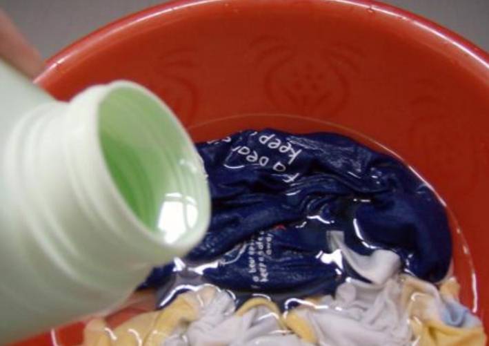 洗衣粉和洗洁精清洗法也是一个不错的方法,将强力洗衣粉和洗洁精以1:1的比例溶入温水中,之后浸泡衣服,半个小时后用手搓洗,效果也是非常不错的。