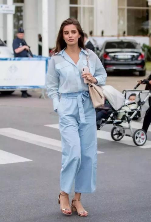 这个不用说都知道,哪里胖就用深色来遮,上身搭配浅色系还能显得青春而活力。棉麻的材质舒适有透气,最适合夏天的穿搭,而挖肩的设计清凉露肉,又恰到好处,袖子的荷叶边设计更甜美有度,鲜明的色调让梨形身材的你在这个夏季更吸睛亮眼!