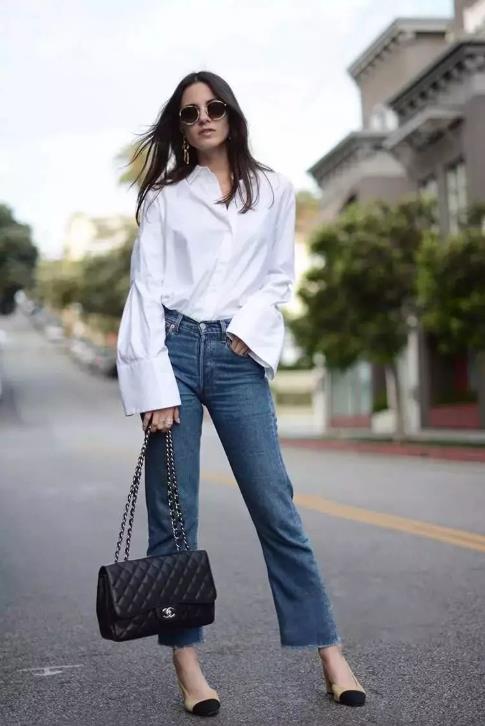 3、宽松上衣:梨形身材的特点就是上小下大,所以上衣可以选择宽松一些的版型,这样可以中和上下身的量感。