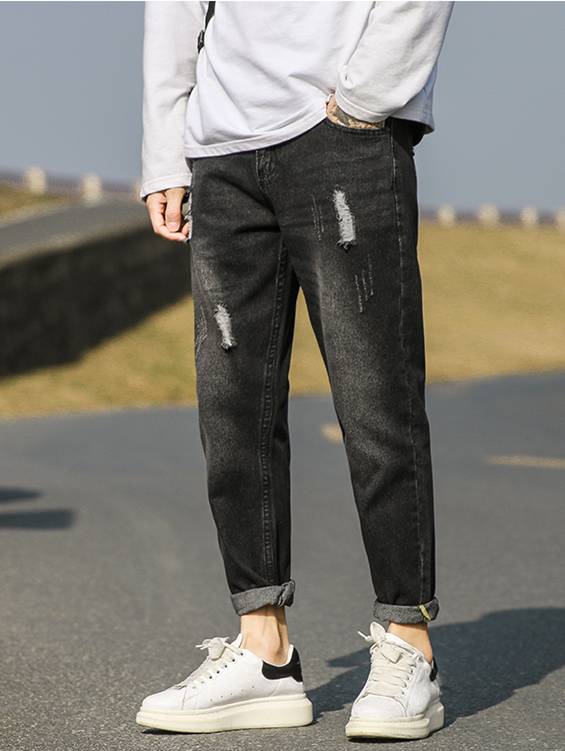 矮个子的男生本来就腿比较短,所以千万不能选择裤腿很宽、很长的裤型,特别是穿上后裤腿有明显皱褶的更显得腿短了。最佳选择是修身的九分裤了,露出脚踝显得更高,而且还能给人干净利落的感觉。