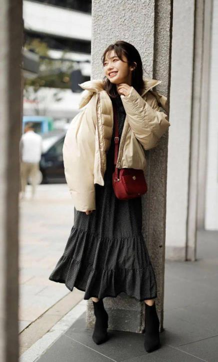 1. 冬天穿裙子有个很重要的一点就是穿打底裤,这个非常非常重要,要想穿上好看又保暖的裙子出门,打底裤是保暖的必要措施。