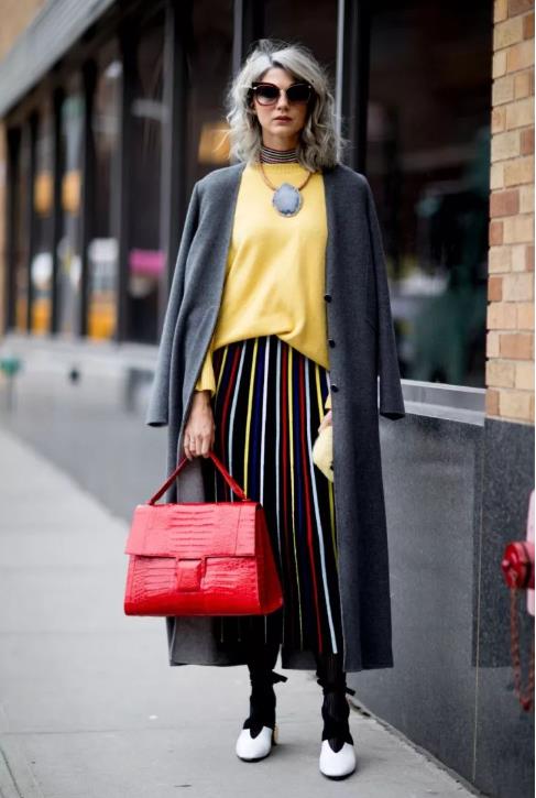 2. 时尚潮流风格 偏爱时尚潮流风格的女性朋友对冬季半身长裙是很有诱惑力的,百褶半身裙在搭配上时尚的外套,时尚之余不失甜美清新感,再里面搭配好看袖衬衫和丝袜,提升整个造型的时尚亮度,最后一对好看的高跟鞋更是养眼。