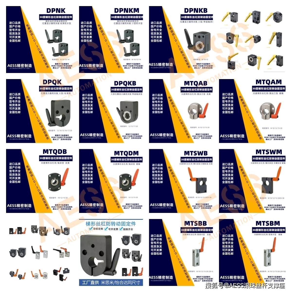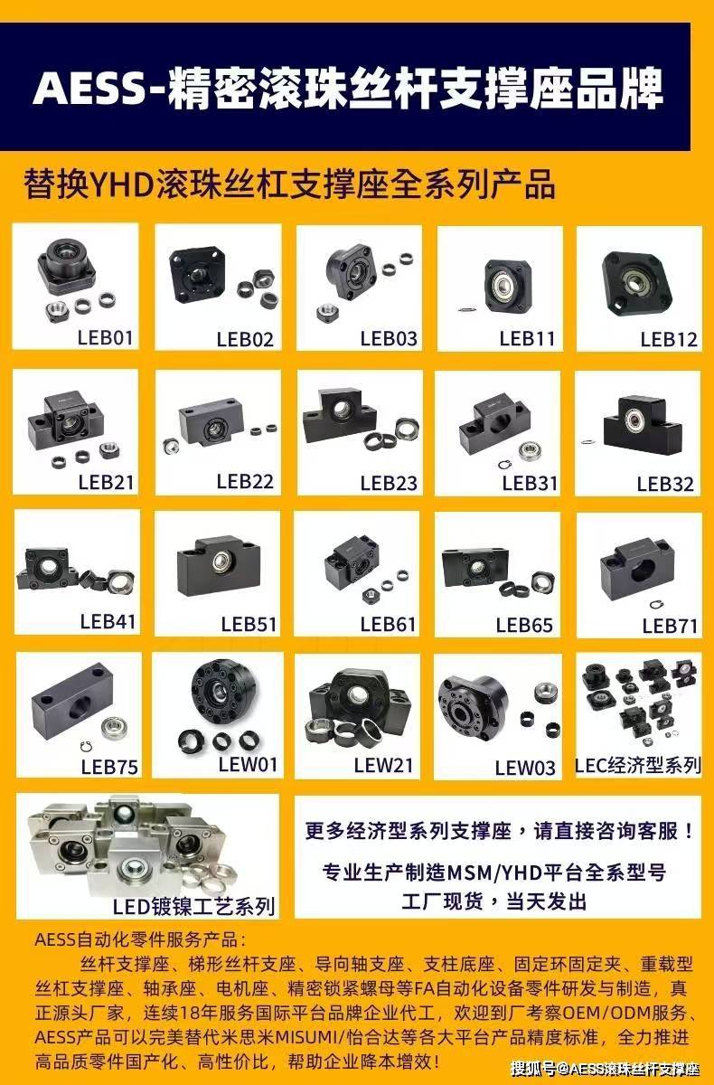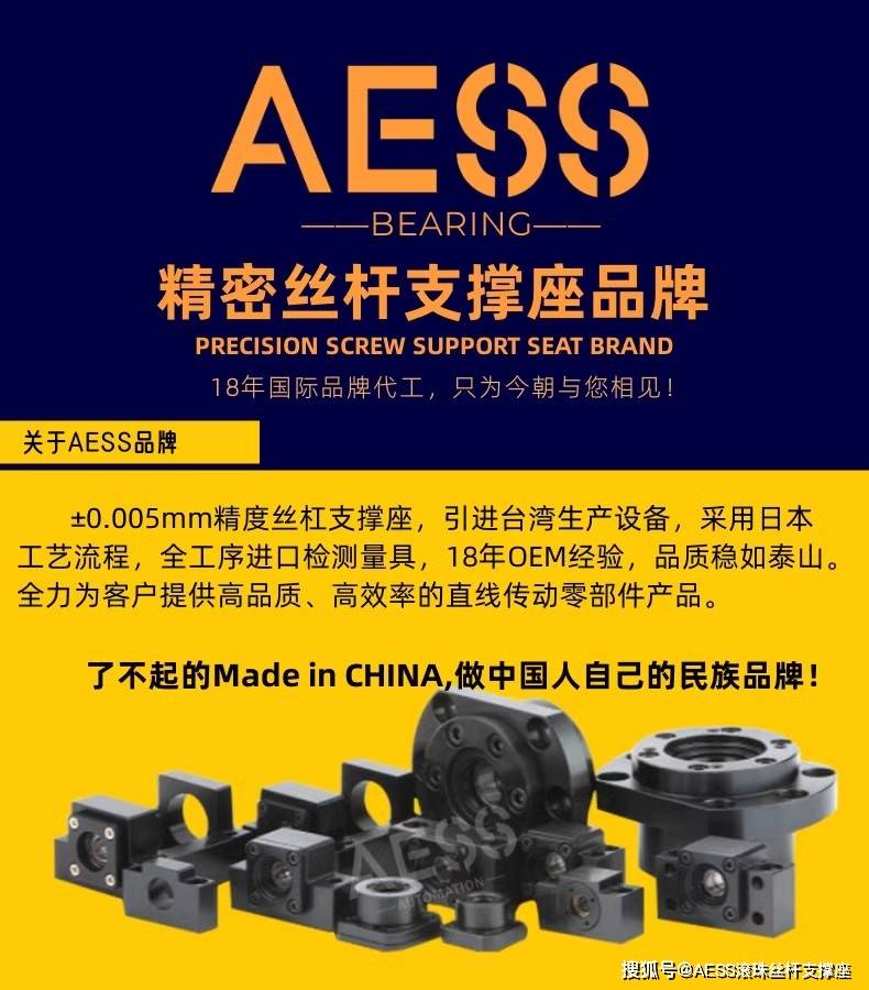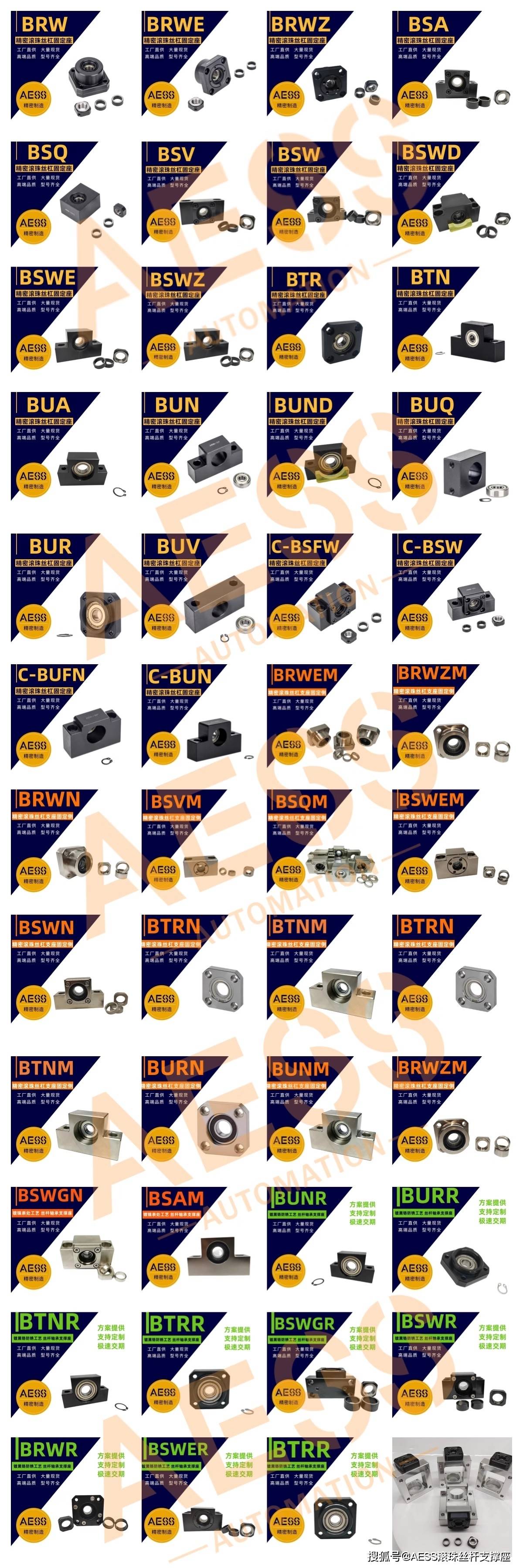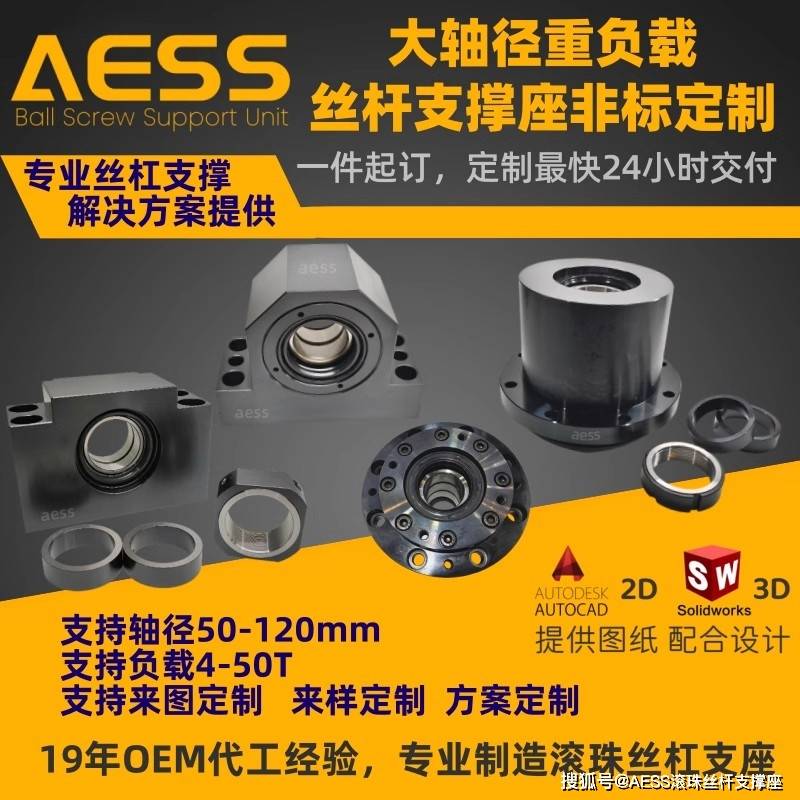 AESS 有 18 年专业研发、生产经验,是全系支撑座生产厂家,可最大限度节省降低采购时间、商品成本。其丝杠支撑座和梯形丝杠支座可完美替代米思米和怡合达等精度标准件型号,专注工厂自动化标准零件替换、非标定制一站式服务,能够根据客户的特殊需求,提供定制化的丝杆支撑座产品,满足不同客户的个性化需求。可以支持表面处理有发黑,镀镍、镀黑铬,材质有不锈钢材质,铝合金材质等,我们工厂能支持不同材质的定制,不同表面处理的定制。全品类型号标准件库存现货,现货急发,交货期快,支持提供2D/3D图纸技术支持!