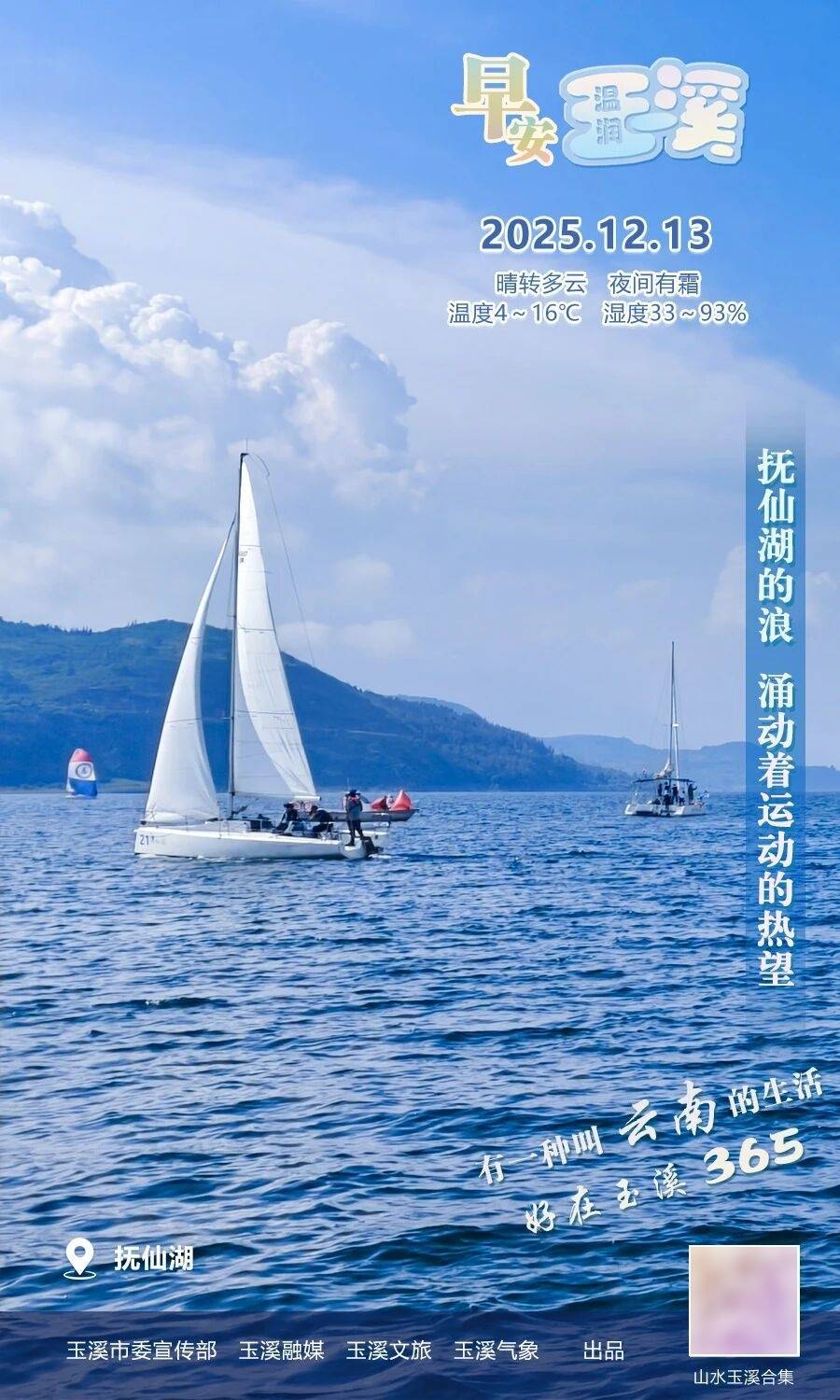 洁白的帆船似灵动的飞鸟,奏响活力乐章,在微风轻抚下竞相追逐。四周青山环绕,蓝天白云倒映湖中,构成一幅绝美画卷。抚仙湖凭借其得天独厚的自然条件,成为运动比赛的理想之地,在这里,运动的激情与自然的诗意完美融合,尽显山水玉溪的独特魅力。