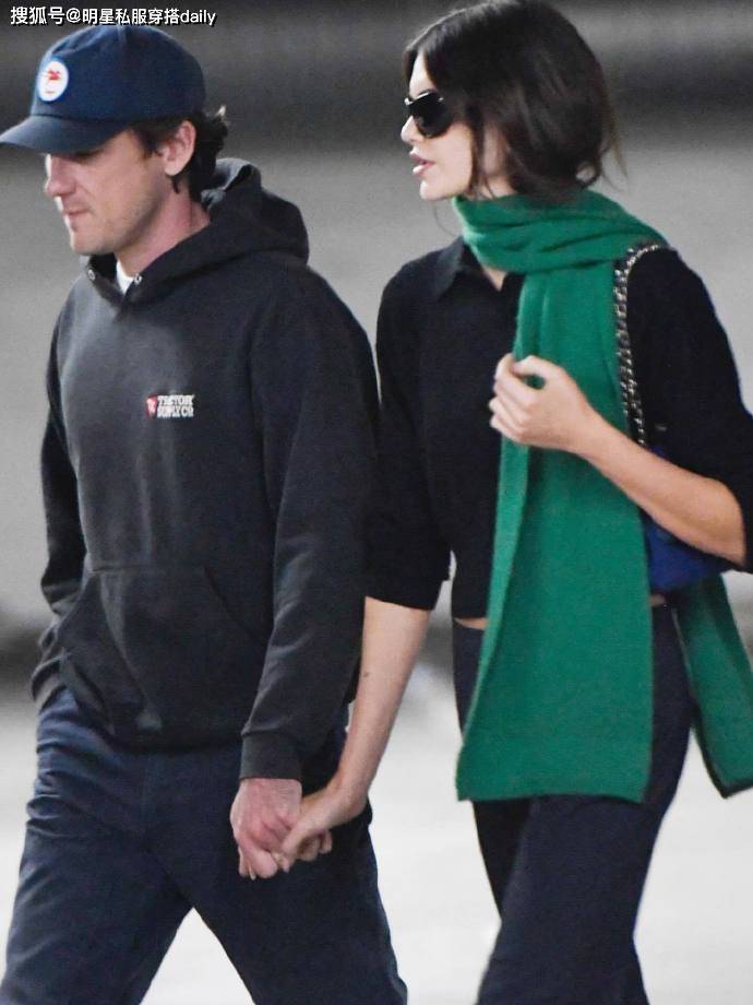 3、黑色蕾丝吊带+黑色缎面半身短裙Kaia 的这套黑色蕾丝吊带 + 缎面半身裙造型,将女性的柔美与性感展现得淋漓尽致,堪称约会穿搭的教科书!黑色蕾丝吊带衫自带浪漫与性感氛围,蕾丝花纹精致细腻,避免了纯黑的沉闷,同时又保持了极简主义的高级感;修身的版型勾勒上半身曲线,展现女性魅力却不张扬。