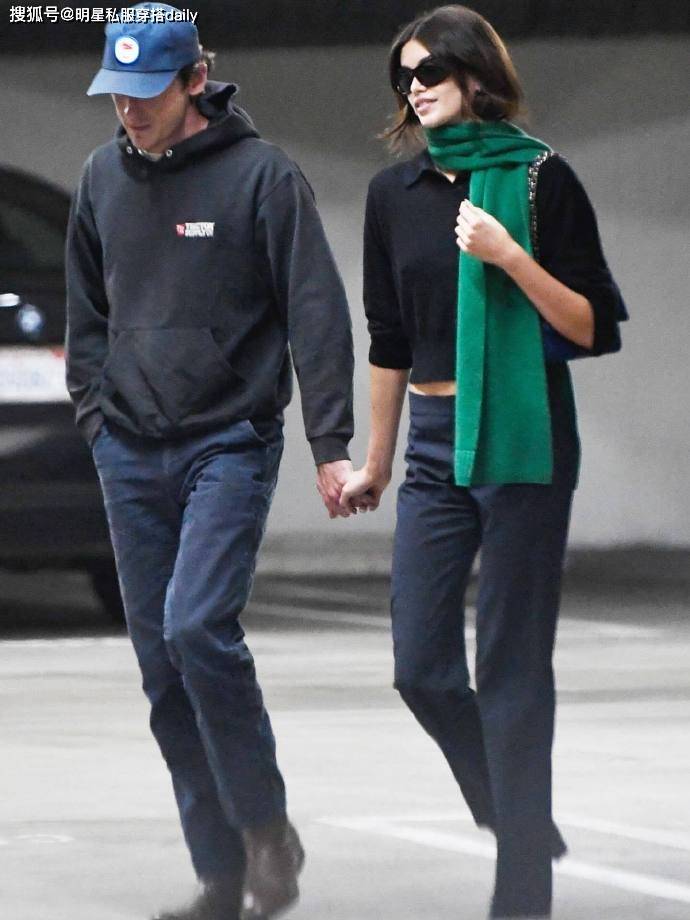 Kaia Gerber 的穿搭精髓,在于用基础色玩出新鲜感,而 “黑色 + 绿色” 的组合,正是她近期的封神之作。黑色作为她的本命色,自带酷飒与百搭属性,而绿色的加入则像点睛之笔,为沉稳的黑调注入活力与层次感。