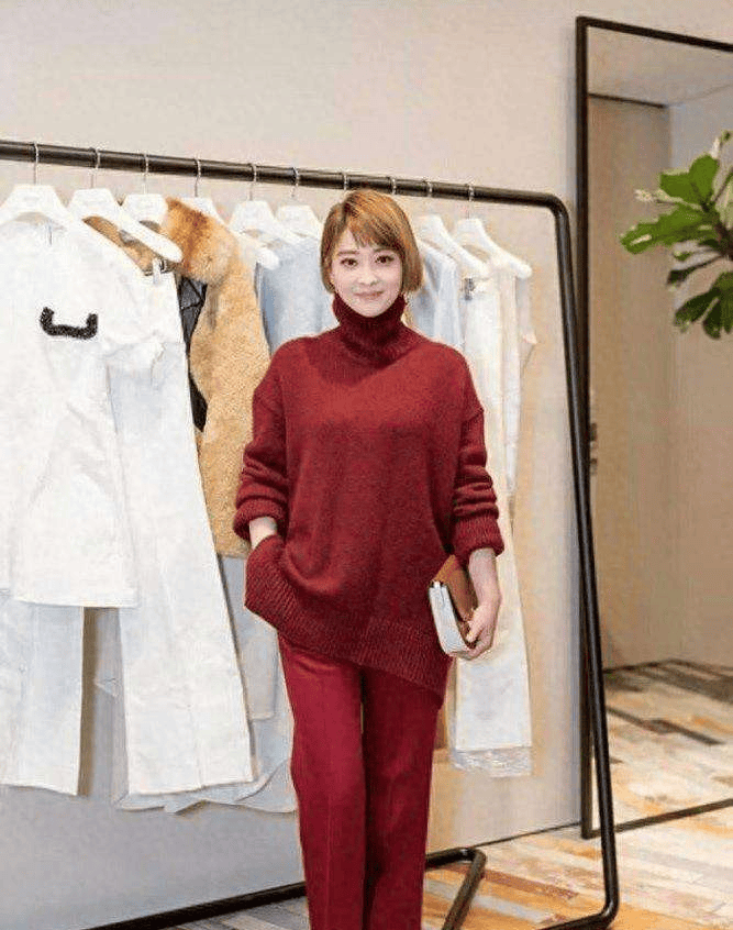 说到酒红色,这个颜色绝对是秋冬季节的救星,我的衣柜里每年冬天都会留一个位置给它。比正红色更温柔,比深红色更提气,尤其是黄皮肤的人穿了,肤色瞬间显得白皙不少,黑皮肤的人穿了也能散发出一种“高级感”。酒红色不仅好搭配,还能轻松应对冬天常见的“懒癌”问题,就像梅婷穿的那件酒红色高领毛衣,颜色低调又优雅,脖部设计恰到好处,刚好避开了“脸白脖子黑”的尴尬,很多姐妹冬天应该都有遇到过吧?