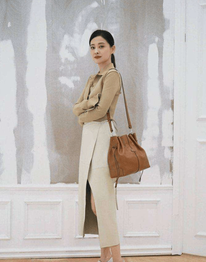 我个人最喜欢的就是梅婷最后那套卡其色修身衬衫和高腰开叉包臀裙的搭配,简直是“得体”的代表。衬衫的剪裁刚好贴合上身,又不至于太紧绷,包臀裙的开叉设计恰到好处,露出一点腿部线条,既展现了职场的干练,又不失女性的柔美。搭配白色小皮鞋,整个人既帅气又不失优雅。四五十岁的女性完全不需要担心“胶原蛋白流失”,像梅婷这样穿得稳重,气质自然,给人一种原装脸的自然感,比那些拼命“装嫩”的做法舒服多了。