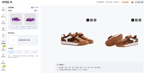 在众多AI电商设计工具中,易可图是目前针对电商卖家优化得比较好的平台之一。特别是它的“AI万能穿戴”功能,非常适合处理鞋靴类的模特上身展示,以下是具体的操作步骤: