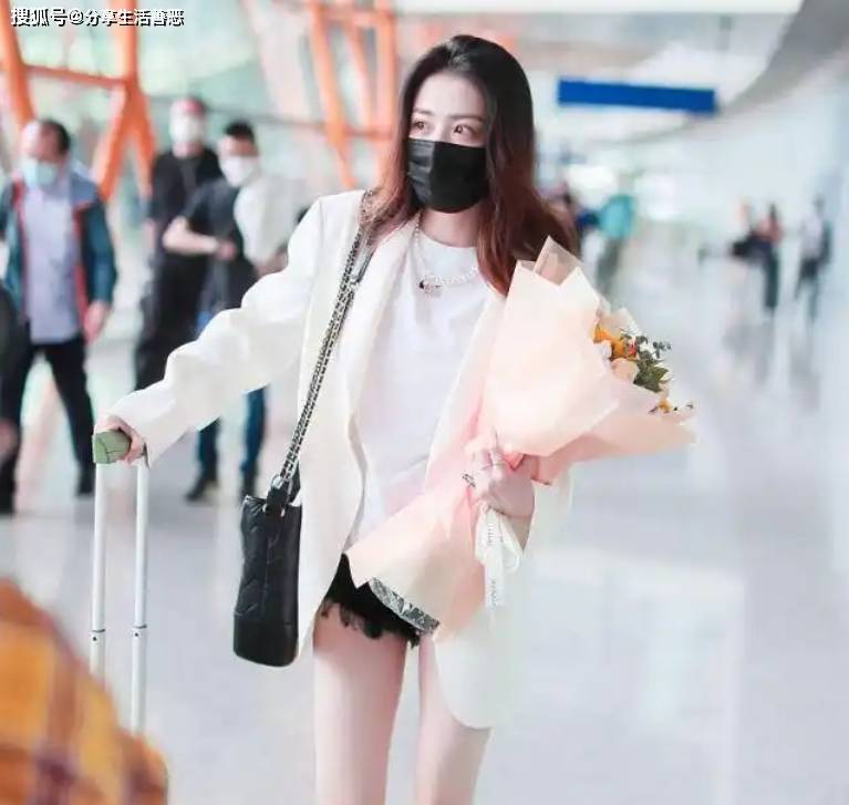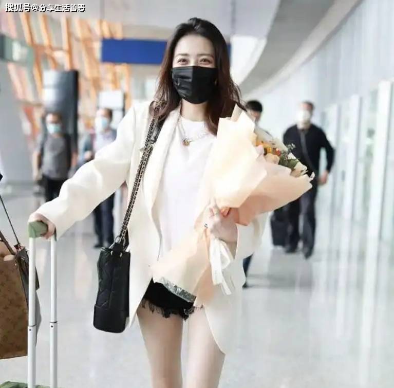 对比徐璐过往的风格,这次的突破简直像开了挂。以前她总爱穿些粉粉嫩嫩的小裙子,走的是邻家女孩路线,而这次的黑白配直接跳出舒适圈,把 “潇洒” 刻进了 DNA 里。机场照片一出来,我瞬间理解了什么叫 “视觉冲击”:她站在人群中,白西装宽大却有型,黑短裤若隐若现,整个人像一阵风刮过,既飒又美,连拖着行李箱的动作都像是在走 T 台。这哪是赶飞机啊,明明是来给大家上穿搭课的!