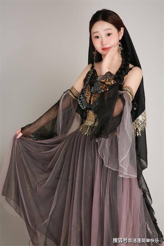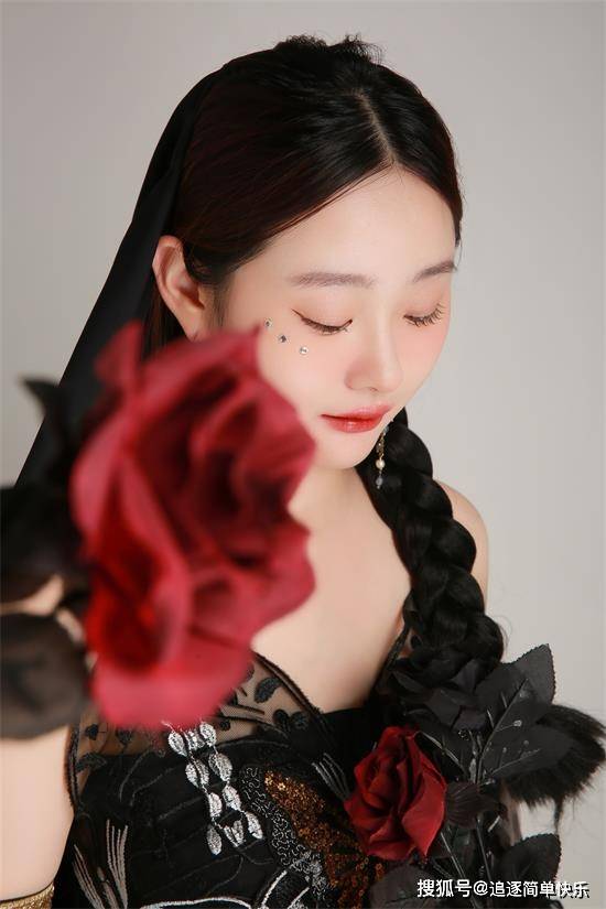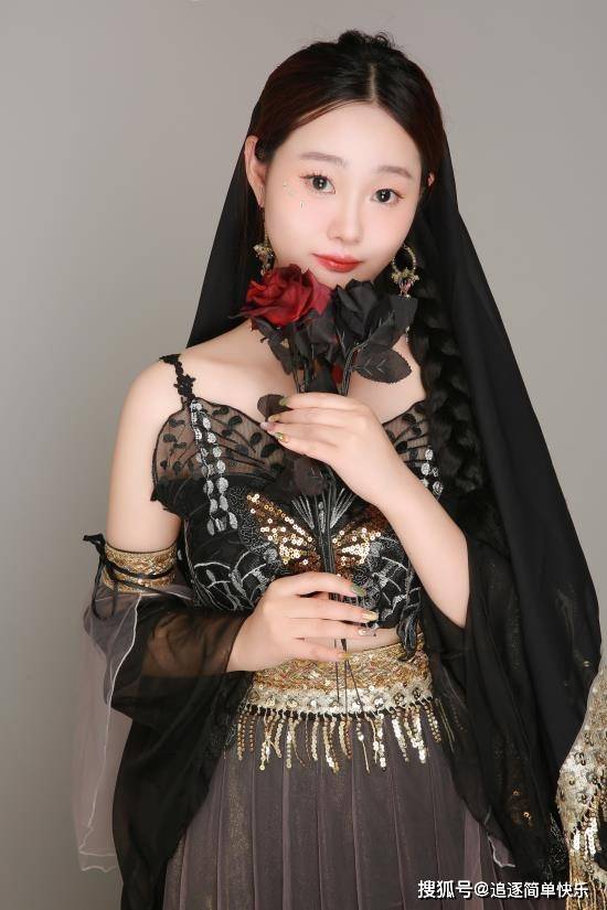 身着一袭黑色长裙,王敏如同夜空中最亮的星,神秘而优雅。她的姿态自信,双臂轻交于胸前,尽显从容与坚定。裙摆层层叠叠,如波浪般起伏,流动的美感令人赞叹。她的妆容精致,眼妆深邃,唇色鲜艳,五官更显立体。发型简洁优雅,高高的发髻凸显颈部线条,高贵气质油然而生。她的眼神宁静淡然,透露出内心的平和与美好。
