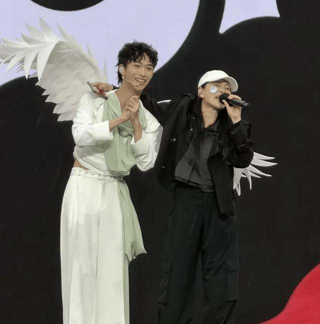 当天,伊能静以一身低调的休闲装扮亮相。她选择了黑色T恤和黑色裤子,搭配白色鸭舌帽,整个人看起来既简约又舒适,完全没有刻意引起注意。她的打扮与站在台上的恩利一身白色装束形成鲜明对比,而这也无疑表达了作为母亲的关爱与体贴。她似乎并不想抢儿子的风头,愿意让所有的目光都聚焦在恩利身上,让孩子成为全场的焦点。