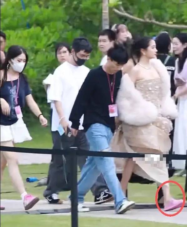 关晓彤的造型更是让人忍不住捂脸。她的礼服搭配毛披肩,看起来像是把东北貂带到赤道,脚下的粉色拖鞋更是令人咋舌。工作室解释说是“后台换鞋赶时间”,但镜头可不等你解释,一秒钟的曝光已经曝光了真相。观众不禁脑补起画面:“婶子,跳完广场舞去买葱吧。”高定战袍配居家拖鞋,这种搭配真是比夜市十元三双还要刺激。