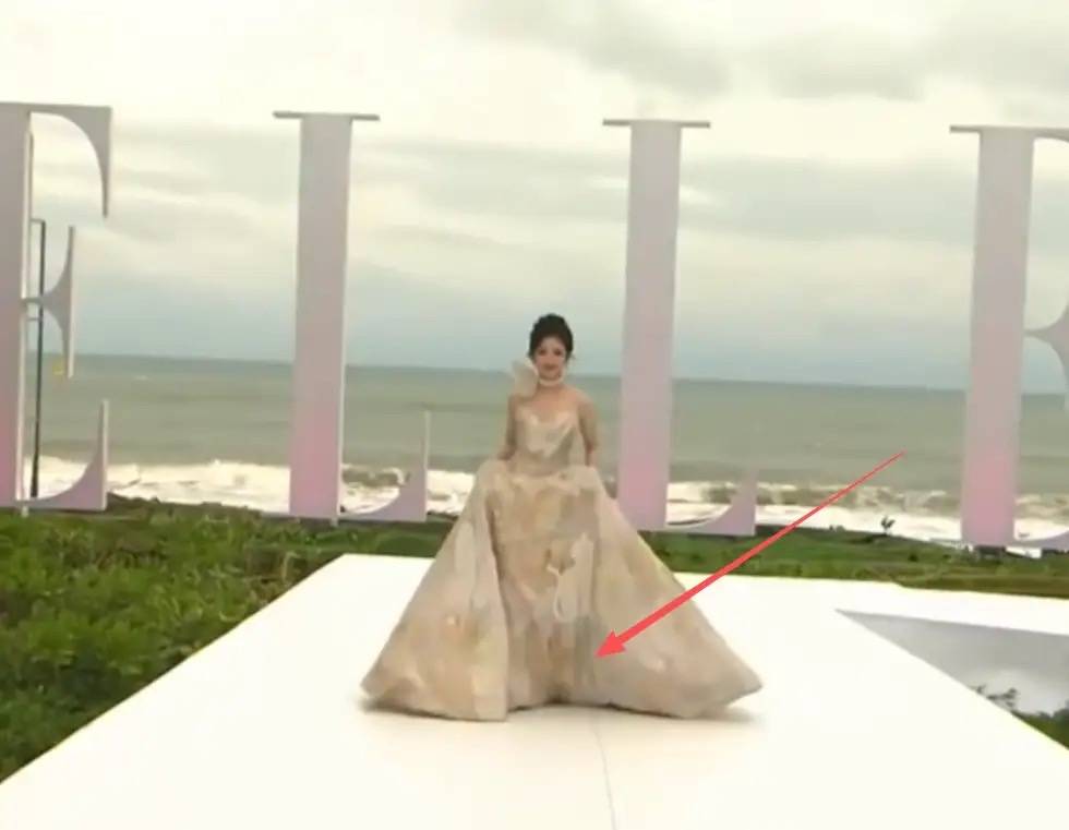 女明星那边,海风也没少“帮忙”,更糟糕的是,造型师的设计让人哭笑不得。杨幂那件贝壳高定本来设计的深V本该展现优雅,但国内团队怕太暴露,加了一件肉色打底,结果远看像是珍珠奶茶加错料,半透明不透,瞬间失去了应有的“贵气”,反倒显得有些廉价。粉丝们说她是在“保守”,但这件“安全牌”用错地方,直接变成了“社死”现场。