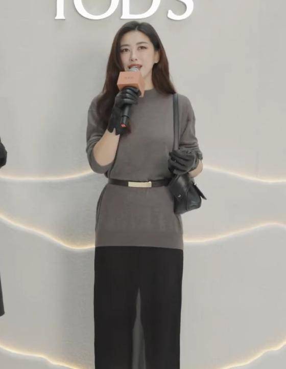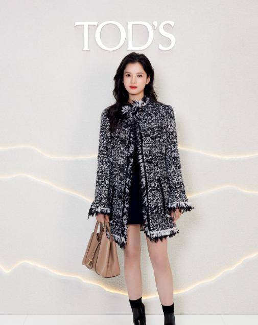 这次活动中她的造型也成为了穿搭模版,质感柔软舒服的长袖毛衣搭配黑色丝质半身裙。