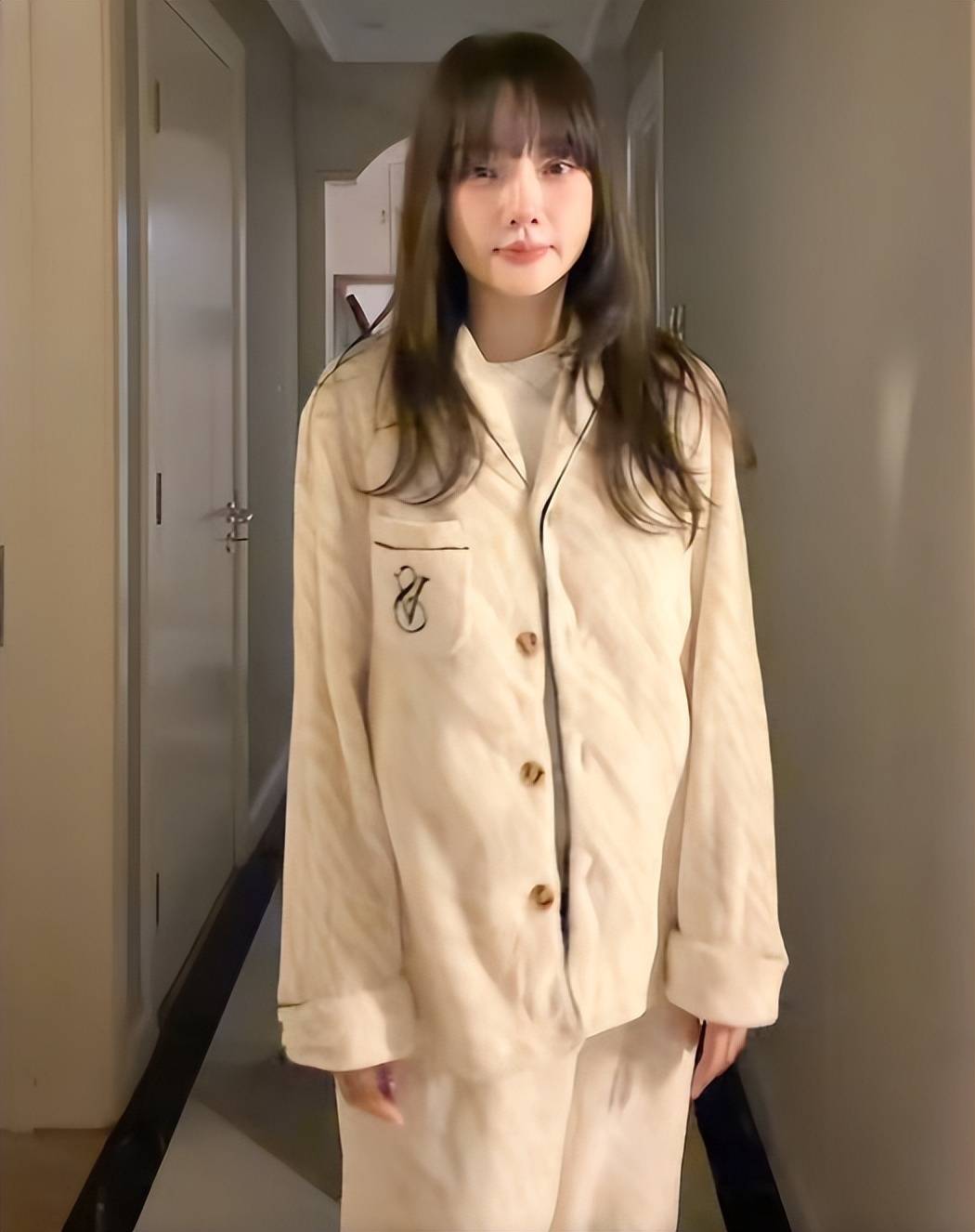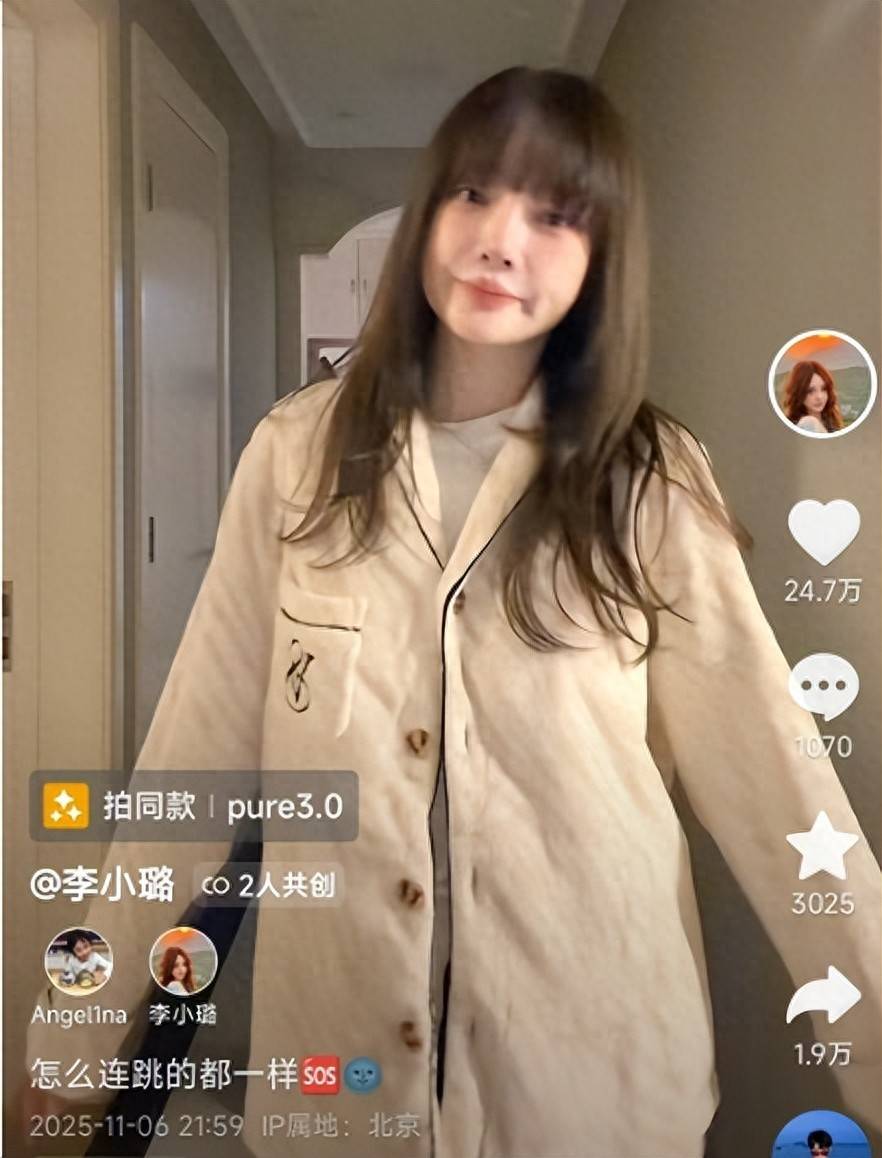 视频开头,李小璐先出现在画面里。她留着齐刘海,妆容精致,哪怕只是穿了一身睡衣,也挡不住那份好看。而且这个刘海造型显得她格外年轻,怎么看都不像四十多岁的样子,反而透着满满的少女感。平时在保养上,她应该花了不少心思。