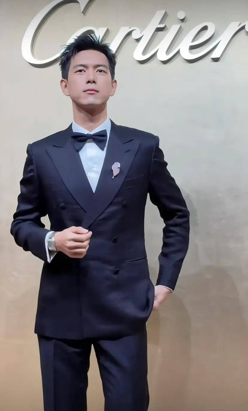 李现则以内搭白衬衫与蝴蝶结的造型出席,同样俊朗不凡,只是风格与白敬亭迥异。后者偏向韩系精致,而李现则更显硬朗粗犷,散发着浓郁的男性魅力。