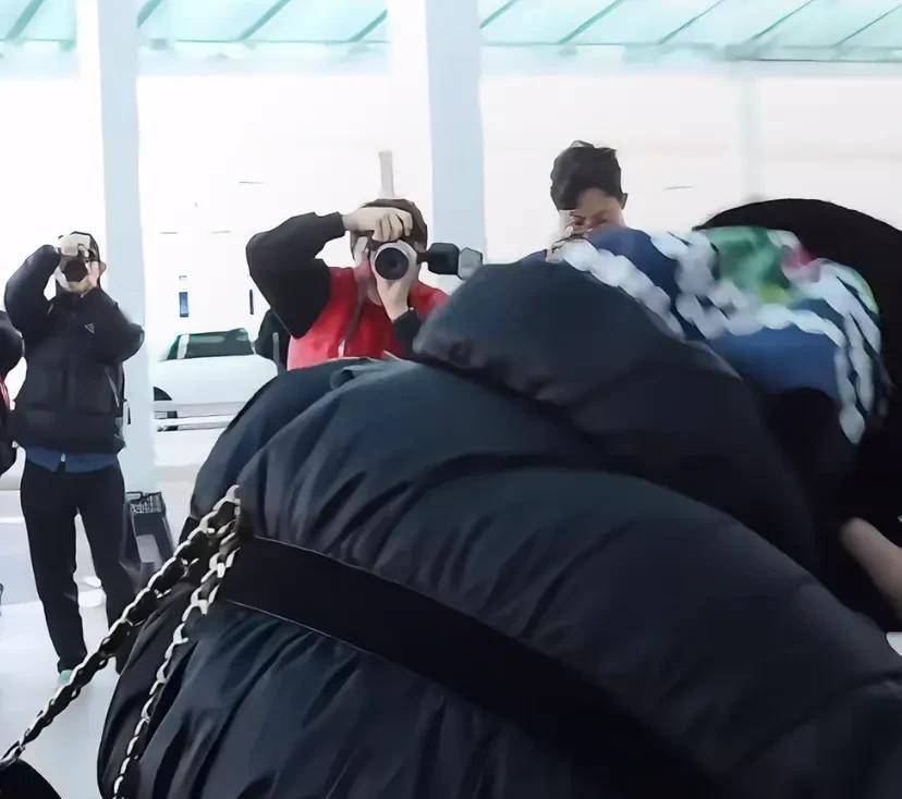 进入机场内部,四位高大的保镖紧随其侧,负责提拿物品。而权志龙则双手插兜,微微低头前行,从容之中带着几分低调。